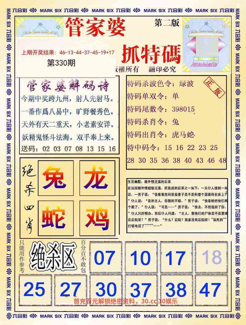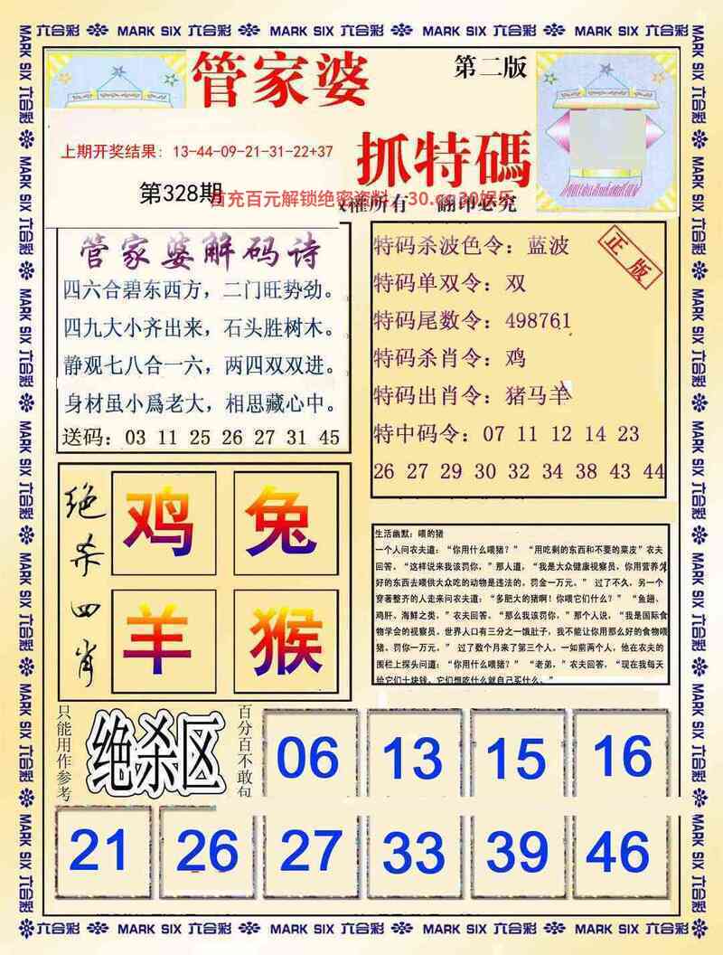 | 330期:家野两肖【家禽+虎鼠】开:马36准 |